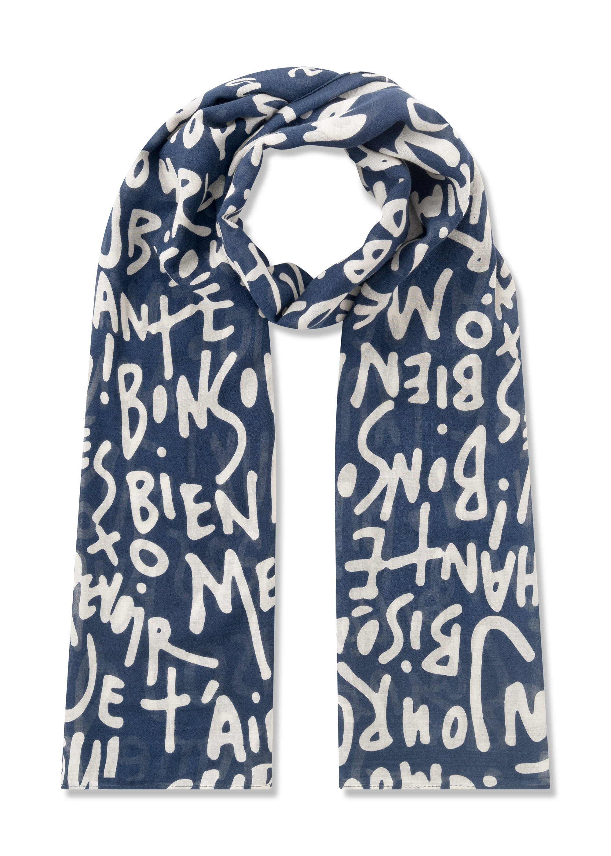 Schal aus feiner Modal-Baumwoll-Mischung mit französischen Schriftzügen