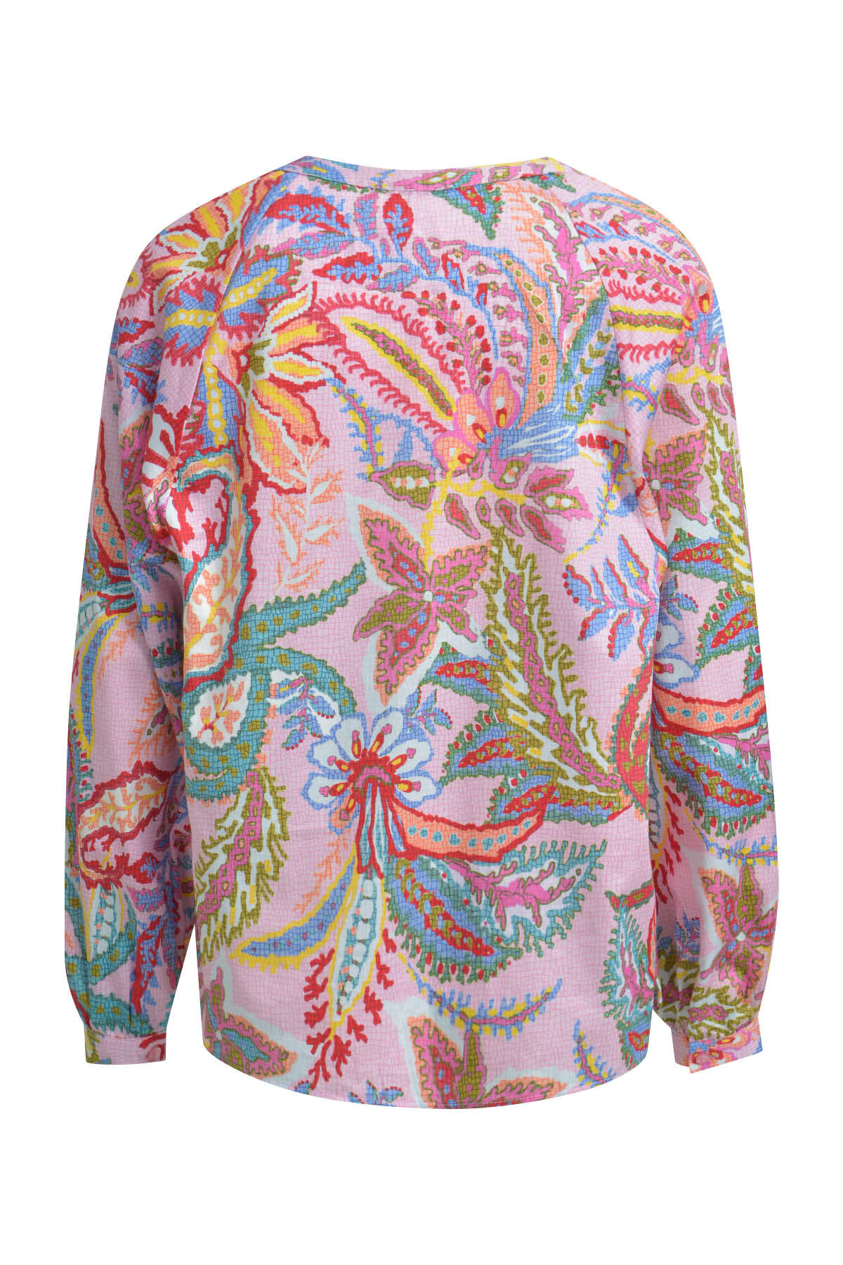 raglan sleeve blouse, neckpanel w/ slit