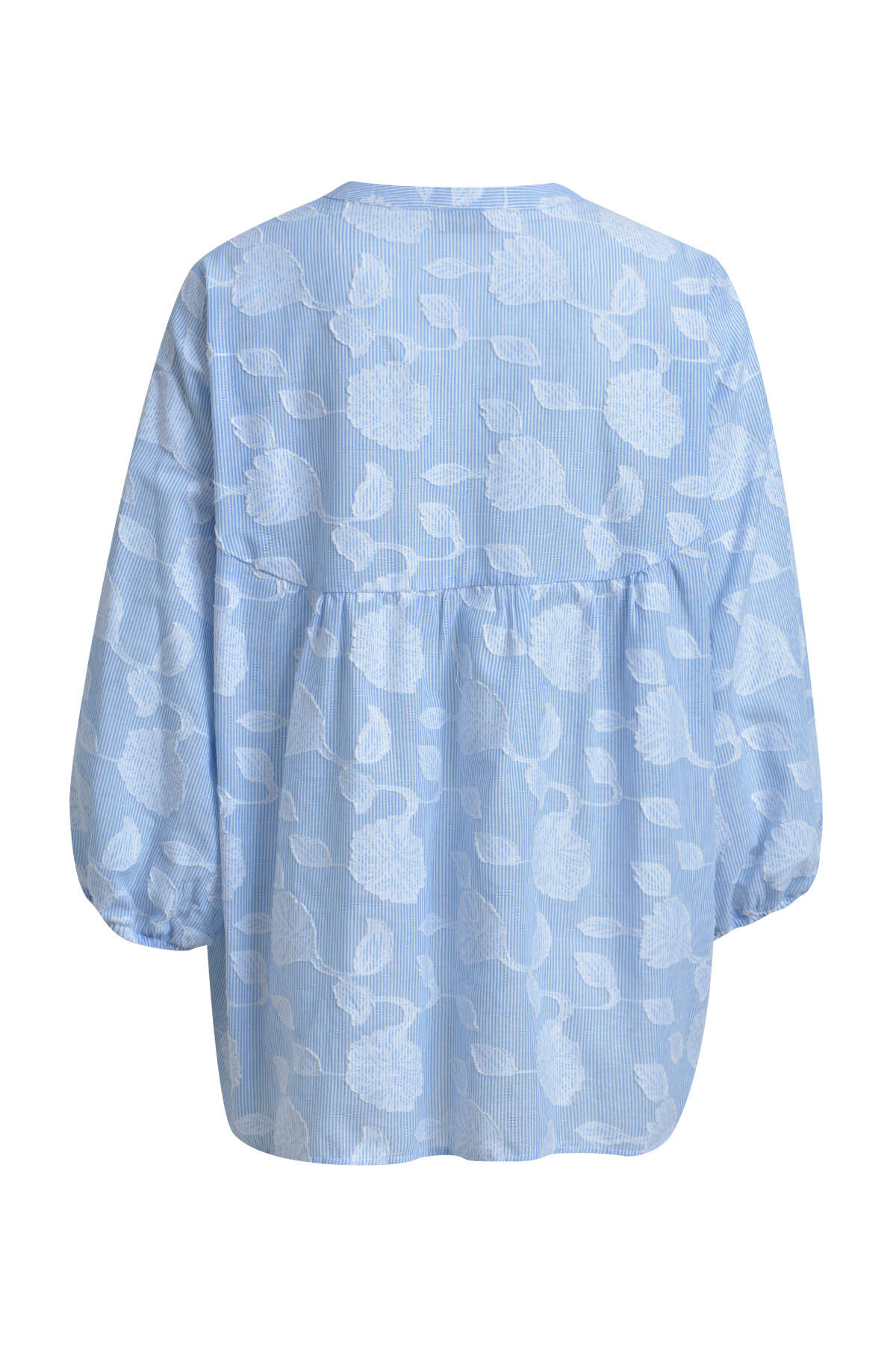 blouse w neck panel and slit, 3/4 sleeve